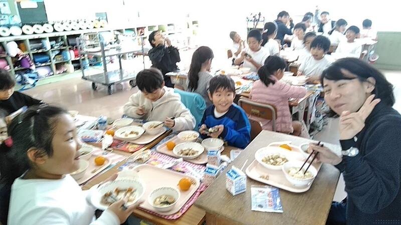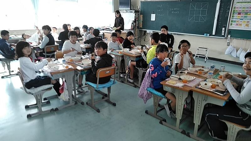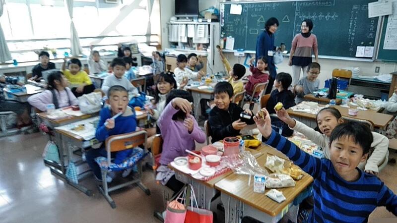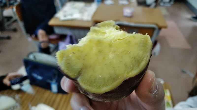 11月5日に収穫した2年生の「さつまいも」を伊藤なぎさ先生が家庭科室で蒸かしてくれ、お昼に食べました。