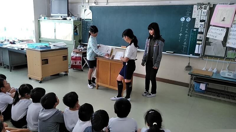 子ども司書の田渡さん、図書委員会の宮迫さんと金重さんでした。子どもたちも真剣に聞いていました。ありがとう!