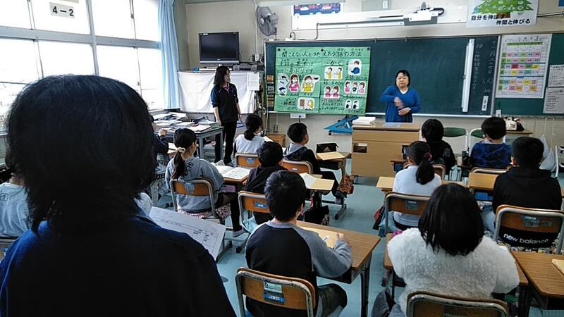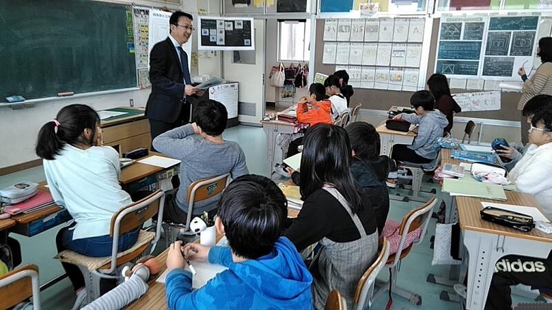 ↑4年生にはたんぽぽ学級担任の倉澤先生 ↑5年生には阿部校長