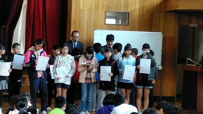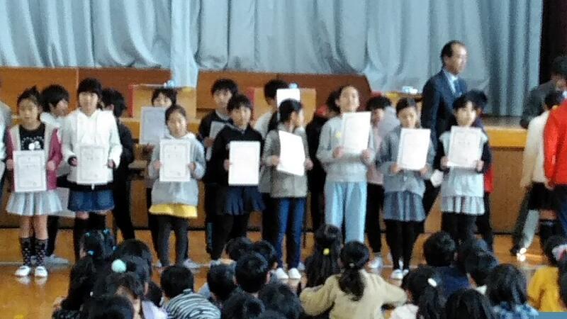 たくさんの表彰があり、子どもたちのがんばりがうれしいです。(水泳能力賞、福祉の心作品展、技術家庭科展、持久走、ランニングマスター)