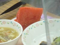 初物のスイカです。もう「夏」ですね。今日はあいにくの雨でさくかったのですが,ここ数日暑かった事もあり,
