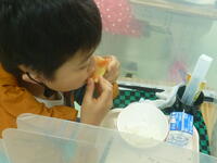 楽しみにしていた給食。感染対策をしっかり行い準備をして,「いただきます!」