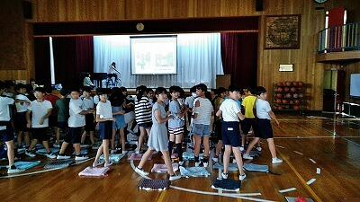 ↑さあ出発だ ↑体育館では6年生が体育をしていたよ