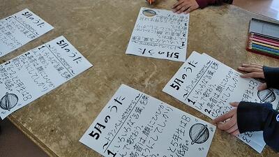 ↑6-1「みんなが笑顔でいるところ」 5-1「給食」(しっかり残さず食べる)