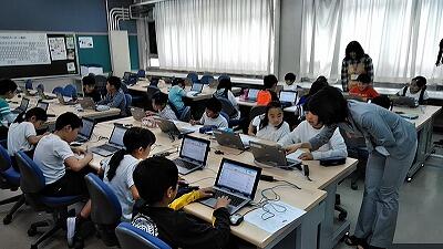 ↑2時間目は,コンピュータ室で1人1台のPCを使っての調べ方