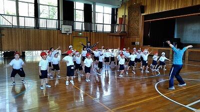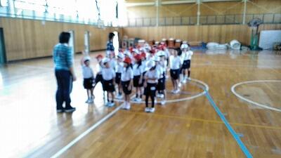 1年生は、体操服に着替えて、初めての体育館での体育をおこないました。