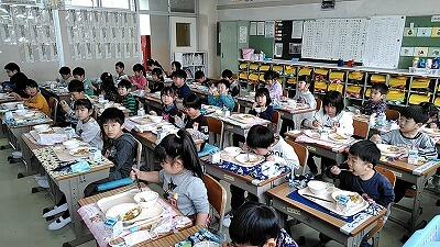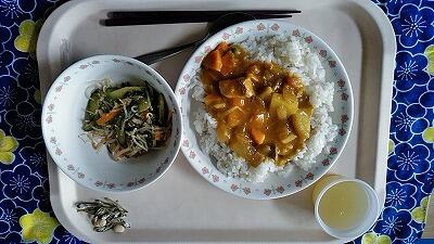 今日から小学校での給食の始まりです。1年間に約180食ですので6年間では1080食の記念すべき1食目。メニューは、もちろん子どもたちと私の大好きな「カレーライス」でした。