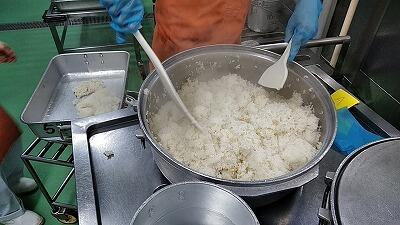 ↑となりの釜ではすき昆布サラダつくりとご飯(16キロも炊きました)↑食缶が空になった1年生