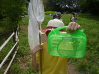 「虫が触れない」と言っていた子も,自分で網でとった虫は,優しくかごに入れ,嬉しそう