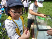 の他の生き物も見つけていました。自分で獲った虫たちの名前を,聞いたり,調べたりしました。