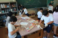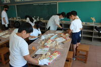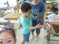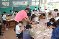 図工室からトントンとリズムよく釘打ちの音が聞こえてきました。教室をのぞくと,保護者の方に加え,校長先生も一緒に釘の打ち方やのこぎりの使い方を指導して下っていました。こういった道具を使っての活動はけがをすることもあります。たくさんの方に見守っていただくことで子どもたちも安心して活動することができました。ありがとうございます。