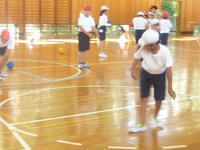 ペアで何度も練習しました。うまくパスをつなげて,トライしたいね!ファイト!
