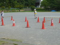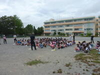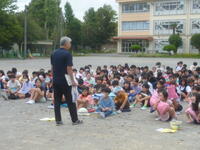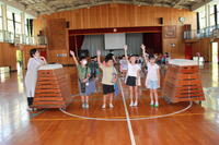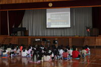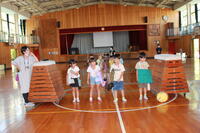 1,2年生は教室に戻るときに跳び箱を建物,ボールを自動車に見立て,安全に横断歩道を渡る練習をしました。今日のお話を思い出し,全員が上手にわたることができました。手の上げ方も立派でした。