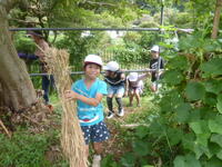「脱穀」で出た「わら」を使用して,12月に「リース作り」を行います。