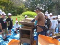 5月の「田植え」から,下田の杜の皆さんにお世話になり,いよいよ普段の生活でよく見る「お米」にします。