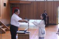 柏市科学作品展,柏市読書感想文審査会で優秀な成績を収めた児童を紹介し,代表児童を表彰しました。また,各学級の学級委員も紹介し,代表児童に校長先生から任命書が手渡されました。