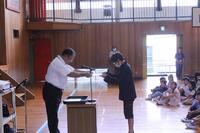 子どもたちには担任の先生から通知表が手渡されました。1年生にとっては初めての通知表ですね。子どもたち一人一人に前期に頑張ったことや後期に向けて頑張るとよいことなどを伝えていました。話を聞く子供たちの様子も真剣でした。全校朝礼で校長先生からのお話にもありましたが,通知表をもらった「今から・今なら」の気持ちを新たに頑張れると思います。ご家庭からも「今から・今なら」とお子様にご支援をよろしくお願いいたします。