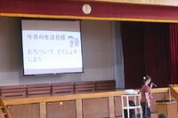 「きつねとブドウのふさ」のお話ではきつねはぶどうを取りたかったけれど,うまく取れませんでした。その時,きつねはぶどうを取れない理由を自分以外のことに求めました。これを学校生活に置き換えて考えてみると,自分ができないことは誰にでもあります。でも,できない理由をほかの何かに求めるよりも,できるように努力することのほうが大切です。そのために先生たちはフォローを惜しみません。「今さら」ではなく,「今から」と頑張るようにしましょう。というお話でした。