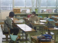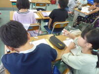 林間学校のしおりが完成し,クラスで読み合わせをしていました。
