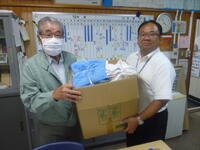 東山町会長様,天寿会の代表の方が学校に来られ,「ぞうきん」を寄贈していただけました。