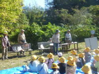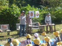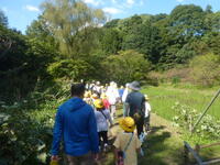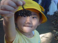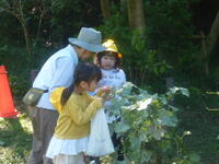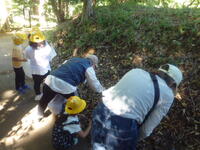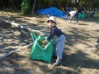 ドングリや赤くなった葉っぱ,いがぐりなど,下田の杜を散策しながら,各々で「秋」を探し,