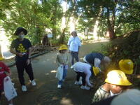 晴天の中,1年生は生活科の学習で,「下田の杜・秋さがし」を行いました。