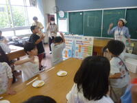 今日は千葉県酪農農業協同組合連合会の方を招いて1・2年生を対象に酪農家さんによる様々な体験学習を通して、食といのちの事を学んでいただく出前授業を行っていただきました。バターづくりをしたり,牛乳の栄養の話を聞いたりしました。子どもたちは目を輝かせながら体験をしたり,話を聞いたりしていました。