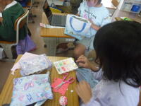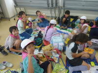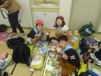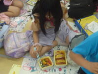 コッペパンにお箸で切り込みを入れてチキンをはさんで食べている子もいました。