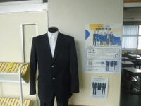 中学校の制服の選択肢の一つである「柏市標準服」の実物見本を展示しています。