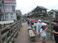 3,4年生の混合班での「佐原の町散策」では,4年生がリードし,