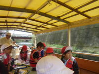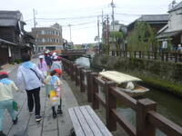 佐原では,「小江戸さわら舟めぐり」での小舟乗船体験と,3年生と4年生の混合班で「佐原の町散策」を行います。