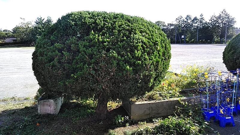 ↑校舎前のタマイブキもはいこの通りきれいに刈れました
