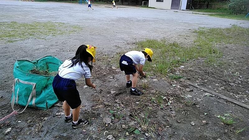 なかよしタイムに、校庭に生えている雑草を抜いていたのですが、1年生の何人かが手伝ってくれました。その気持ちがうれしいですね。どうもありがとうございました。