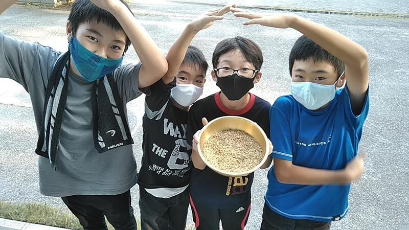 学校では、下田の杜でいただいた苗が生長し、稲刈りを行ったり、いちょうの木から落ちる銀杏の実を拾ったりと収穫の秋です。