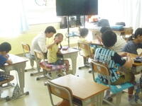 「夏休みは楽しい?」,「どこか,お出かけしたの?」など,担任からの声かけに元気に,笑顔で応えている姿が見られ,嬉しく思いました。10分ほどの短い時間でのふれ合いでしたが,2学期の始業式にみんなと会える日が楽しみになりました。