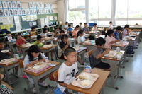 2学期の給食が始まりました。各教室をのぞいてみると夏休み前と変化のあるクラスがありました。3~4人のグループが机を合わせて食事をしていました。5年生に聞くと「1年生の頃はグループで食べていた。」とのことでした。そう考えると4年ぶりなんですね。学級によっては2学期最初の給食なので,これまで通りで食べたクラスもありました。学級ごとに担任の先生が様子を見て変えていくようです。