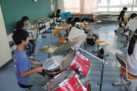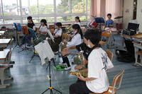 吹奏楽部は夏休みの前から,陸上部は昨日から活動が行われています。吹奏楽部は個人のパート練習に集中して取り組んでいました。