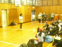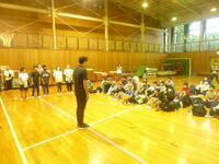 天候は⾬となりましたが、体育館にて出発式を⾏い、予定通り、学校出発しました。