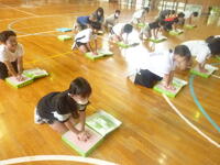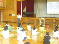 柏消防署の方を招いて5・6年生がジュニア救命講習を行いました。講師の先生のお話では,心臓停止による突然死は年間6万人を超えるとのことです。胸骨圧迫やAEDを使うことで命を失う確率はかなり低くすることができるそうです。突然倒れた人を見つけたら,周りに助けを求め,救急車を呼んだり,AEDを準備したりしてほしいと教えていただきました。人の命を救うためにほんの少しの勇気を持つことが大切ですね。