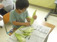 【トウモロコシ皮むき体験】