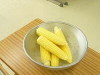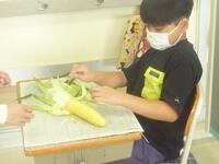 ました。皮むきを行ったトウモロコシは,給食調理室にてゆで上げて,本日のメニューとして全校生徒が