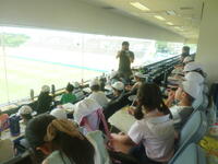ここで質問コーナーが行われ,収容人数など教わりました。グランドの芝が縞模様になっているのは,