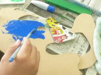 絵の具で色を付け,台に立てたり,重ねたり,組み立ててオブジェにしていきます。