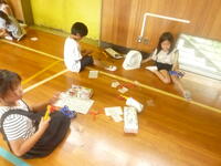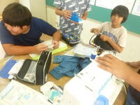 自分たちで組み立てたモデルカーに「帆(ほ)」を取り付け,風の力で動かす実験です。