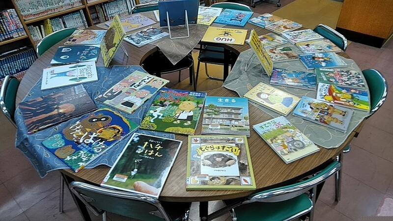 お待たせしました。図書室に新しい本が入りました。今日から金曜日まで、展示会を行っています。子どもたちも、うれしそうに図書室に来ています。保護者の皆さんもよかったらご来校ください。