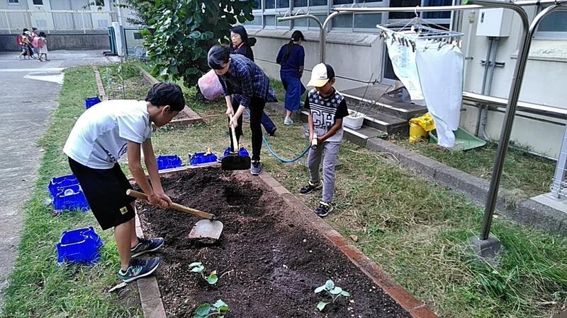 9月まで飼育委員会として活動してきましたが、うさぎの「サブロー」が亡くなったため、10月から「園芸委員会」として活動することになりました。今日は、秋植えの野菜の種まきを行いました。