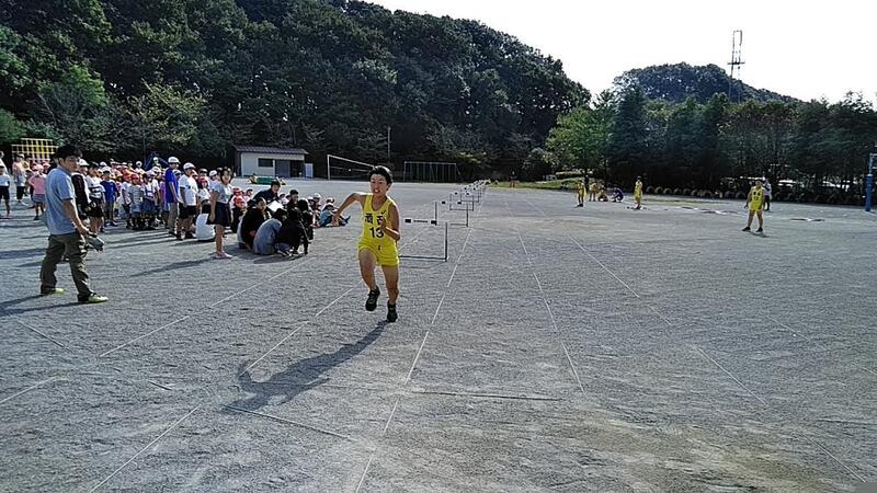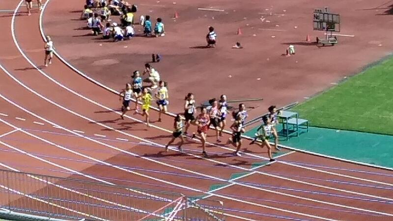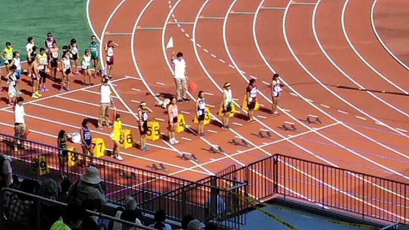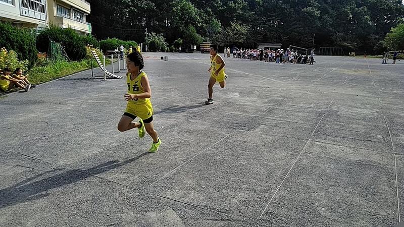 ↑80mハードル(高さ70㎝のハードルが9台) ↑100m・ジュニア(5年)100m