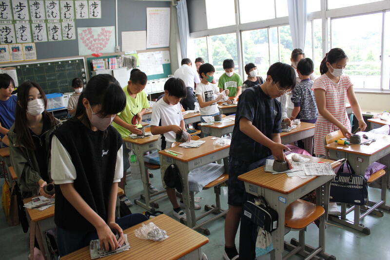 6月29日(木)の3・4時間目に6年生が陶芸教室を行いました。土をこね,糸やへらを使って模様付けをしました。どんな作品に仕上がるか楽しみですね。