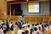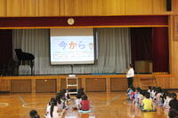 3時間目に防犯教室が行われました。警察の方の話を良い姿勢で聞いたり,大きな声での返事をしたりする姿はとても立派でした。警察の方から安全な登下校についていろいろと教えていただきました。キーワードは「いかのおすし」でした。これからも「いかのおすし」を守って安全に登下校しましょう。