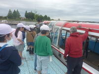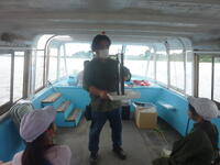 手賀沼の遊覧船に乗船し,船上から手賀沼の歴史や生き物や,水質の改善などについて,一緒に乗船して